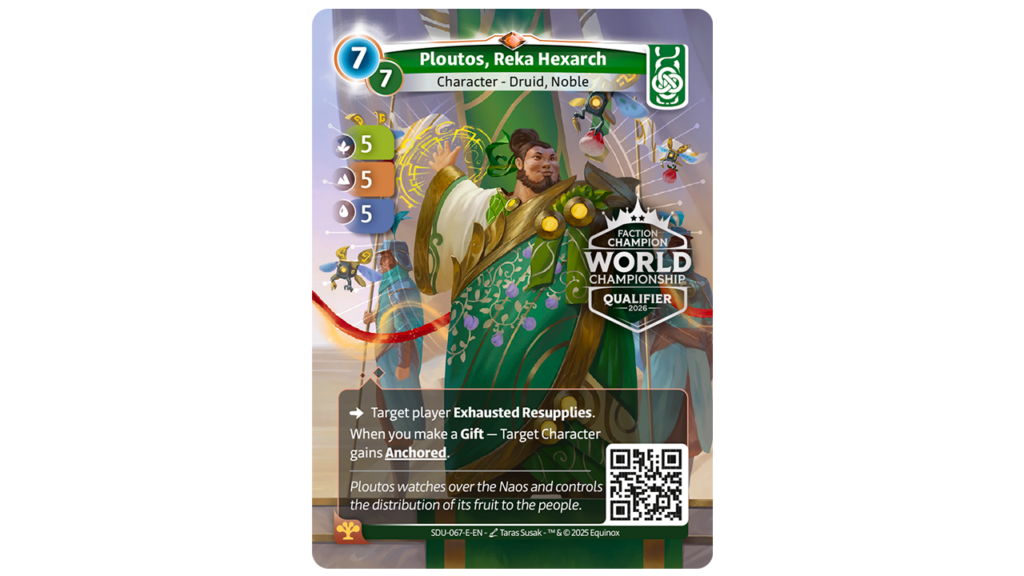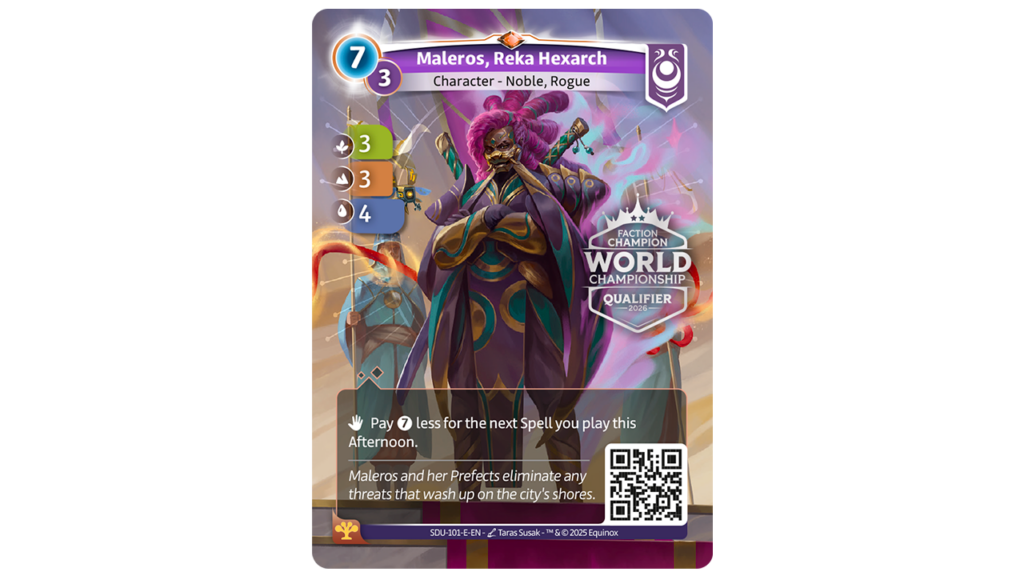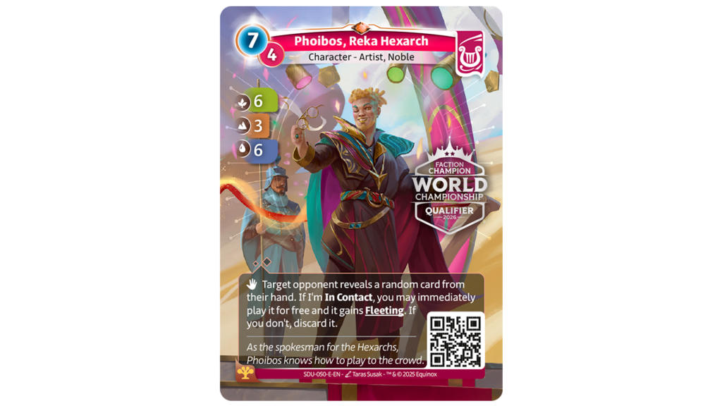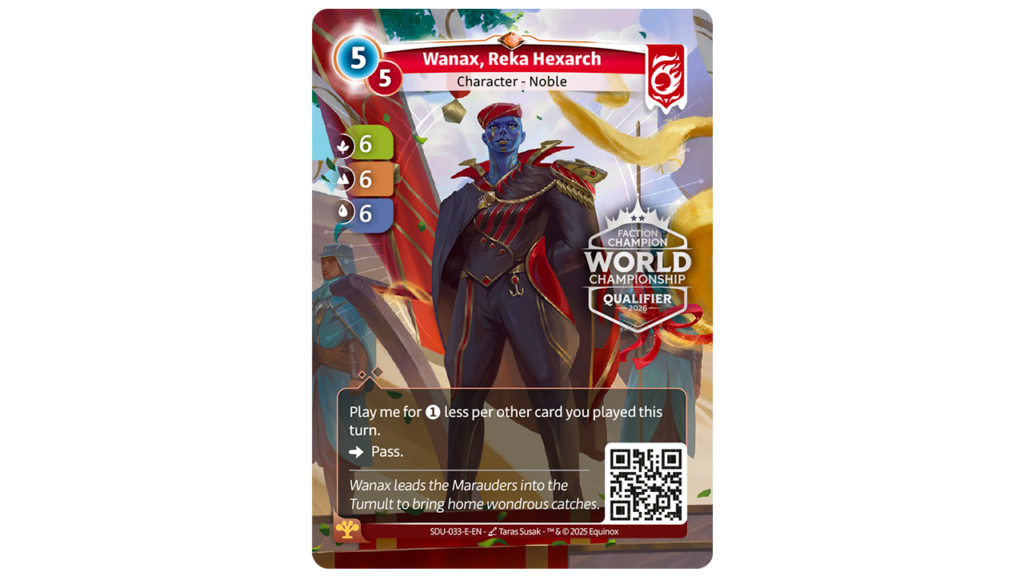 Además, al mejor jugador de cada facción, se les otorgará una carta de Hexarca con el sello del Mundial 2026, que te adjunto a continuación: