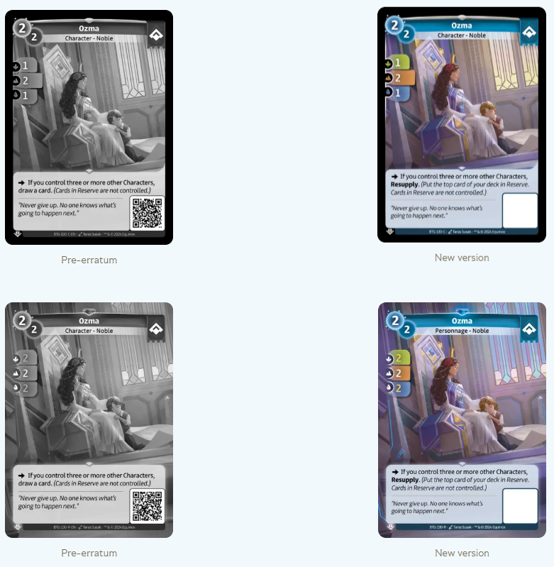Listado de cartas que han sido errateadas (cambio de texto).